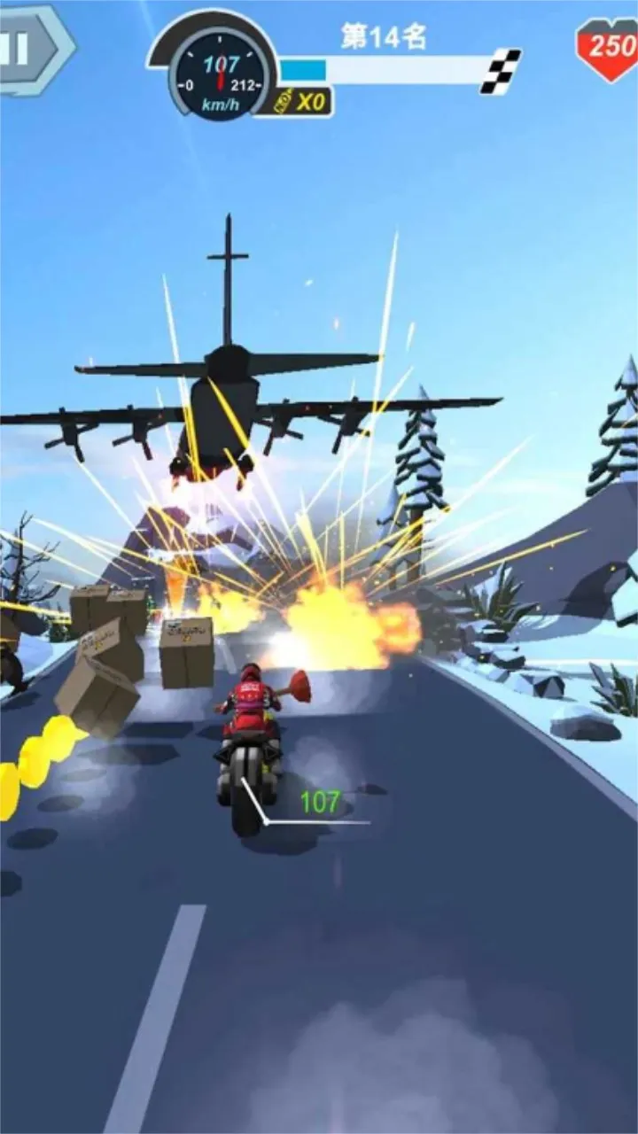 1. 带来刺激竞赛体验:驾驶摩托车开启一场充满刺激的竞赛,途中会遭遇各种不同状况。