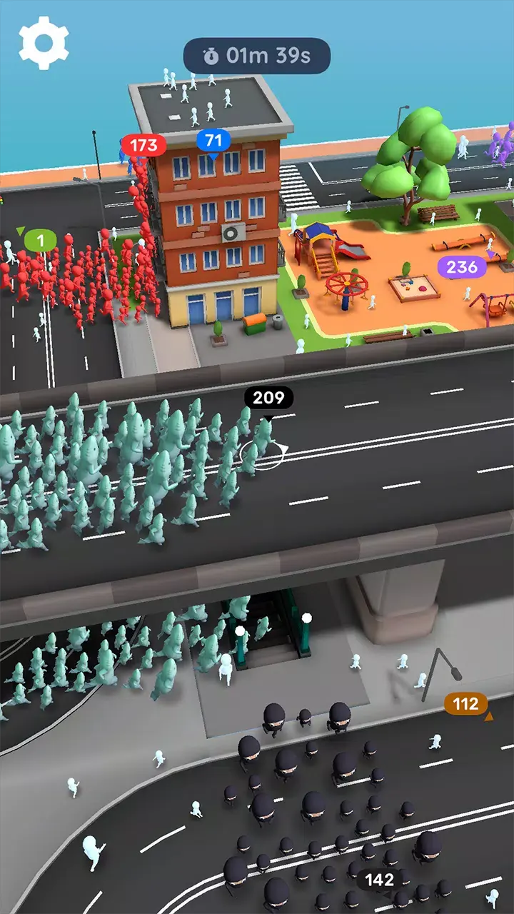 1. 穿梭大街小巷,收集中立火柴人,壮大队伍击败对手,成为城中最强势力。