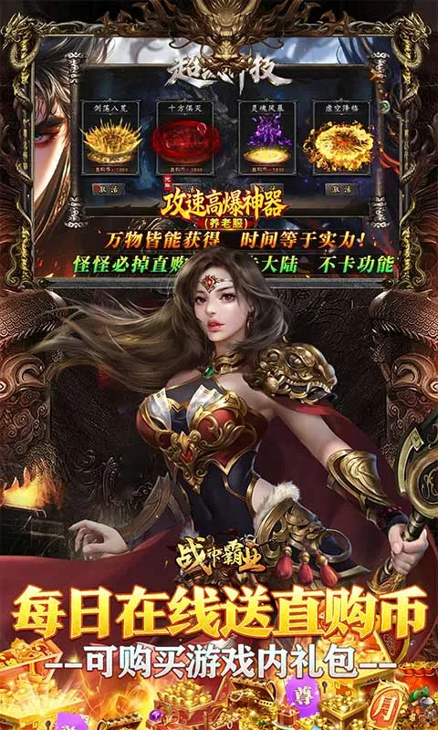 2. 爆率超高:万亿切割千倍爆率,所有物品本服产出,打怪就能轻松获得各种装备道具。