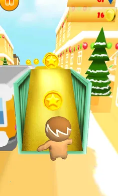 姜饼人世界跑酷是一款跑酷射击游戏,操控冲浪者跳跃、奔跑、冲刺、滑行,在3D糖果屋和姜饼屋场景中收集金币与饼干道具,点击屏幕射击对手,躲避糖果,用金币买升级,享受无尽奔跑乐趣,结束后可继续或重开。